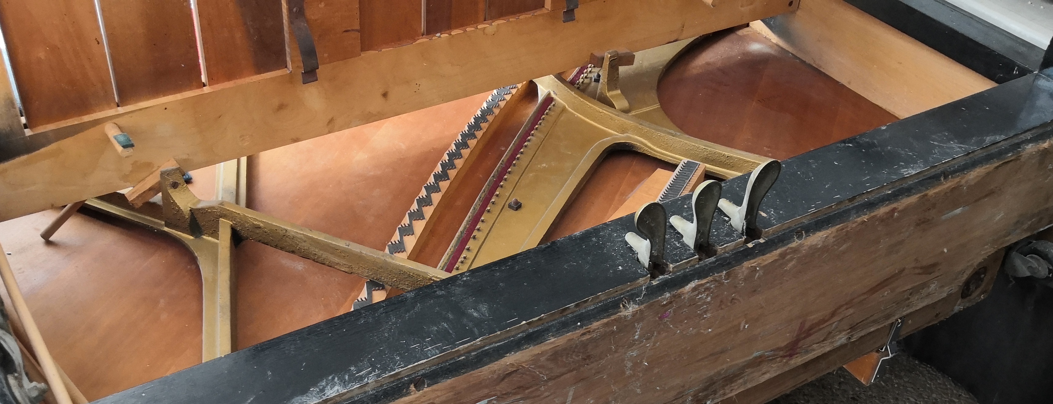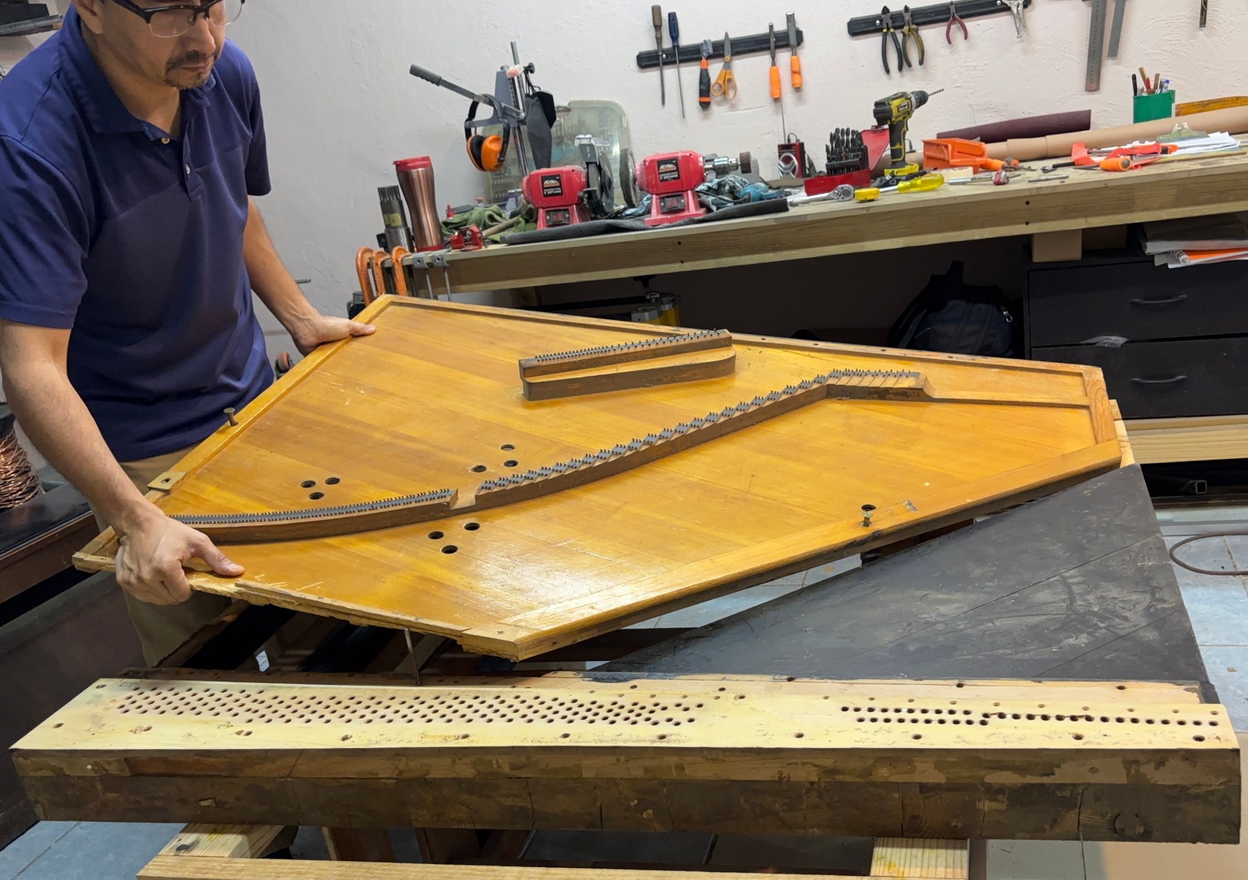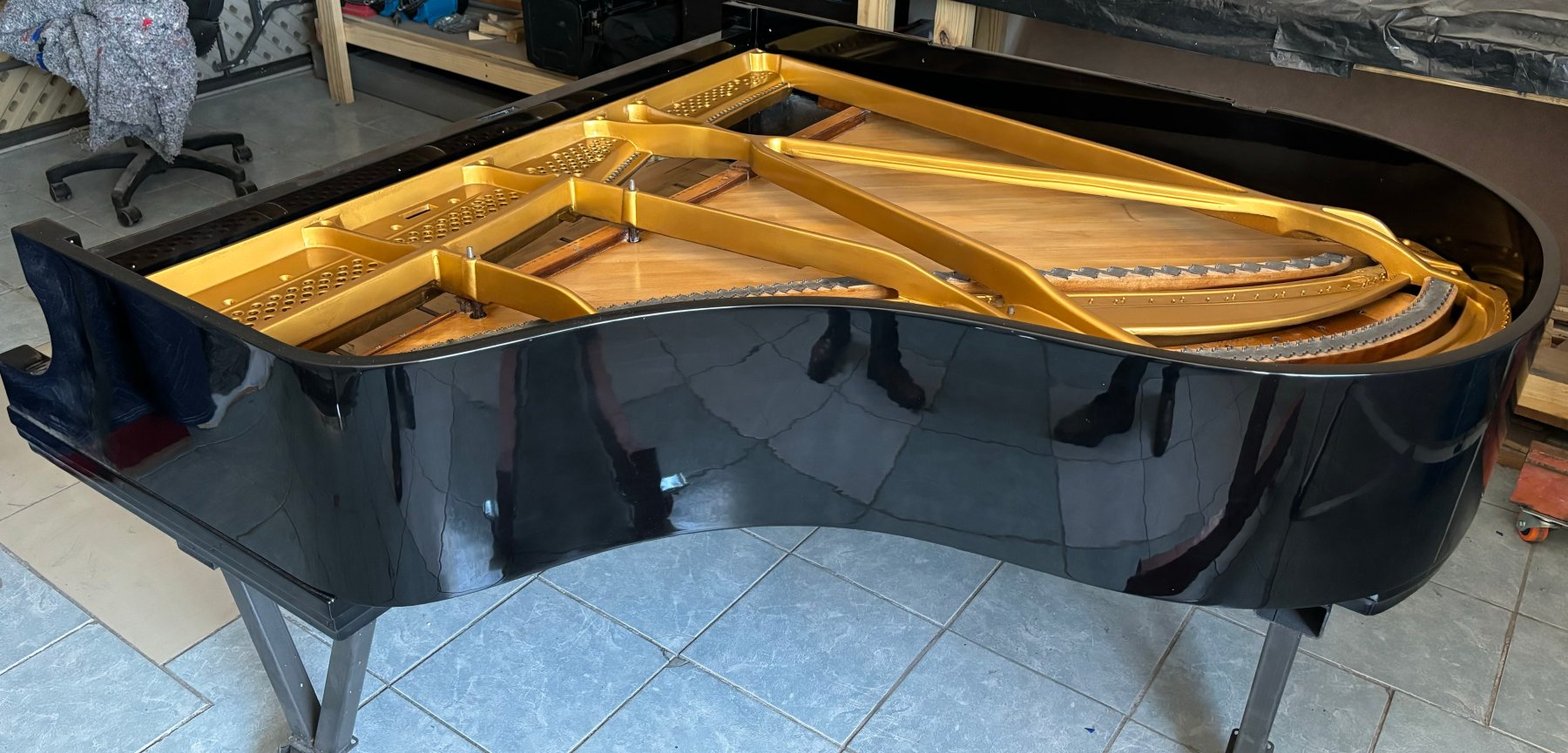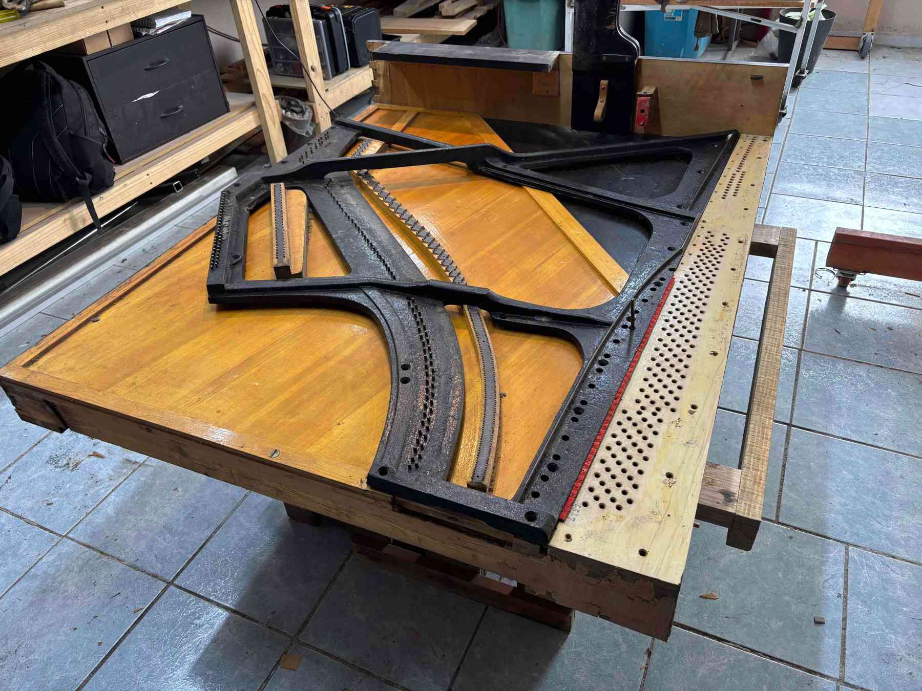 Durante la restauración se remueve el barniz viejo para volver a dar el acabado con barnices y lacas con los estándares para pianos